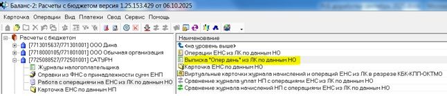 - ➜ Реализован режим "Операционный день" для работы с операциями из соответствующей выписки по ЕНС из ЛК (личного кабинета) по данным НО (налогового органа), реализованный аналогично режиму «Операции ЕНС из ЛК по данным НО»: