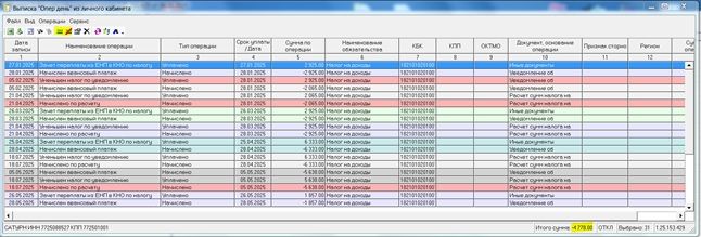 Выписка «Операционный день» из ЛК по данным налогового органа