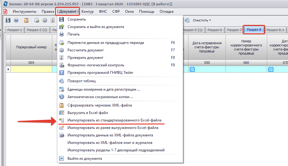 Шаблоны таких стандартизированных Excel-файлов для загрузки находятся здесь. Отметим, что такие шаблоны одинаковы для программ Баланс-2W и Баланс-2Н, а также для документов с наименованием «НДС» и «НДС – большие данные (доп.лицензия)».